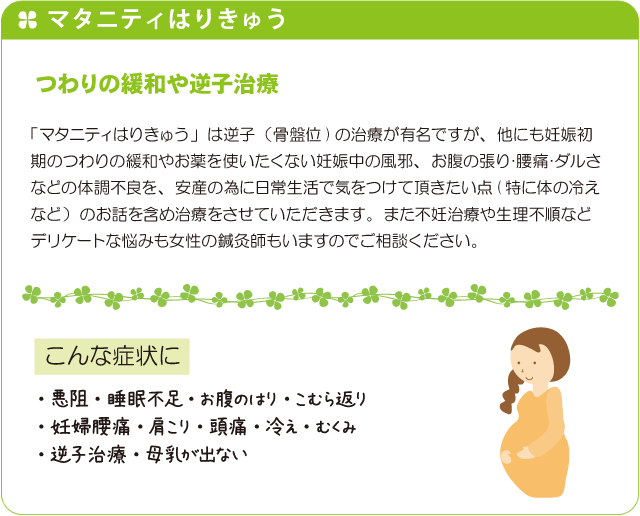 HOME >施術内容 >マタニティ鍼灸